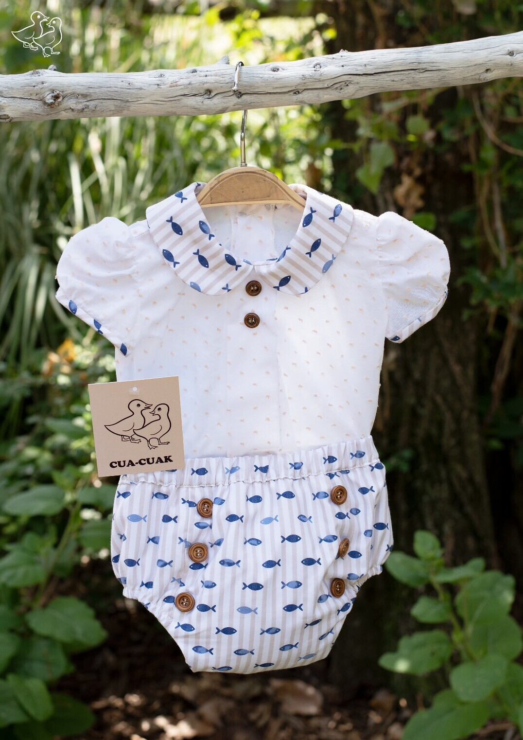 【CUA-CUAK】刺繍のドットとお魚柄のロンパース